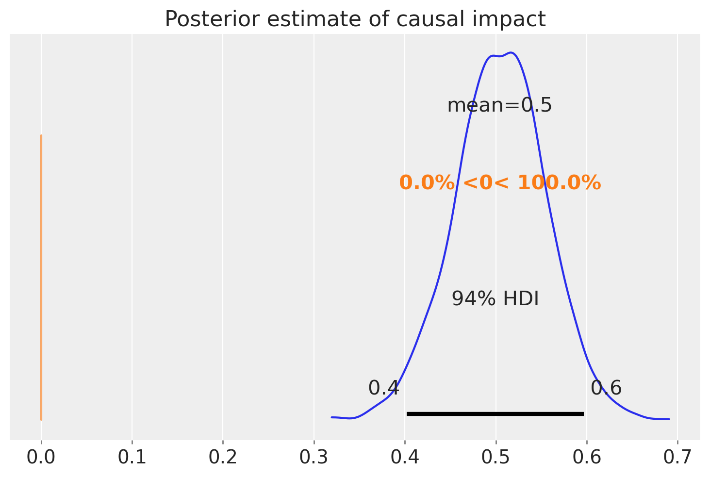 Causal impact = 0.50$CI_{94\%}$[0.4, 0.6]