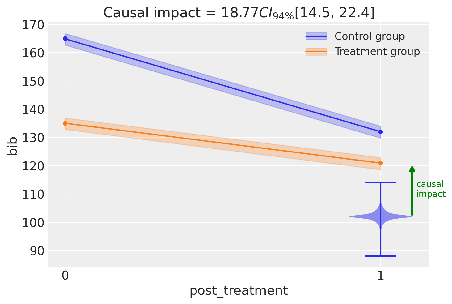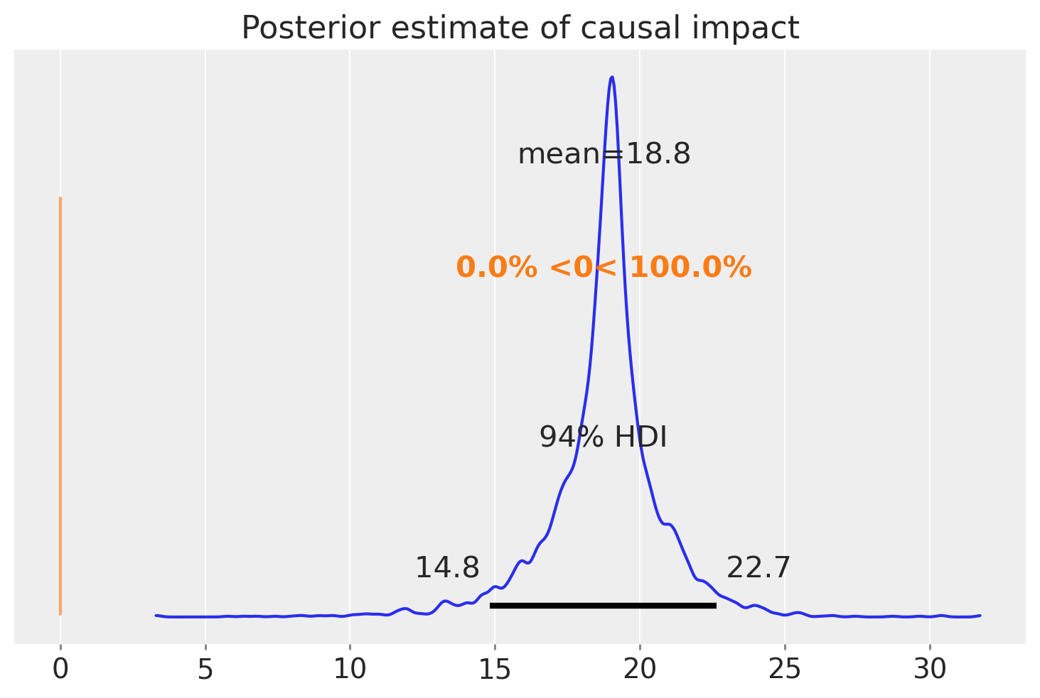 Causal impact = 18.77$CI_{94\%}$[15, 22]