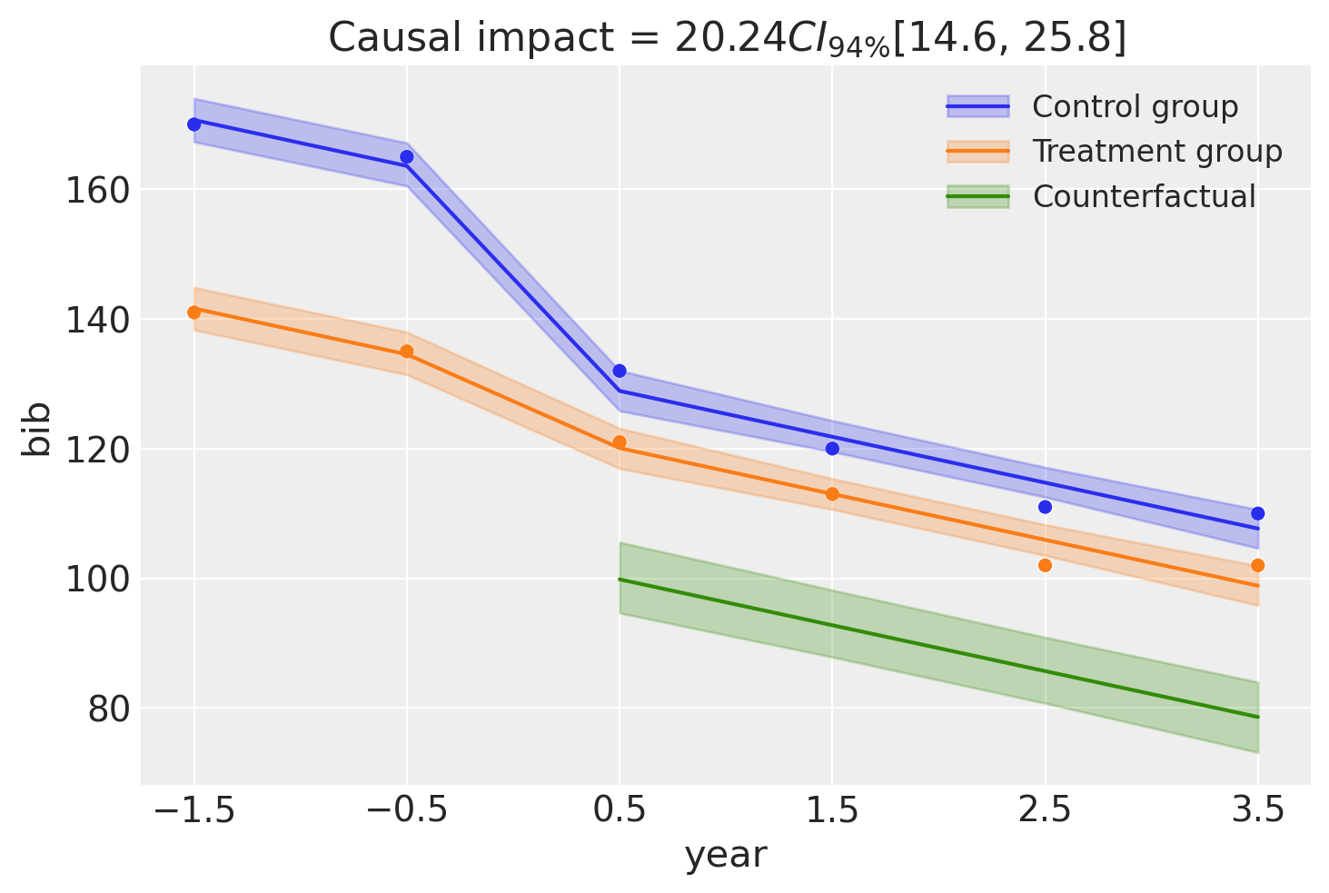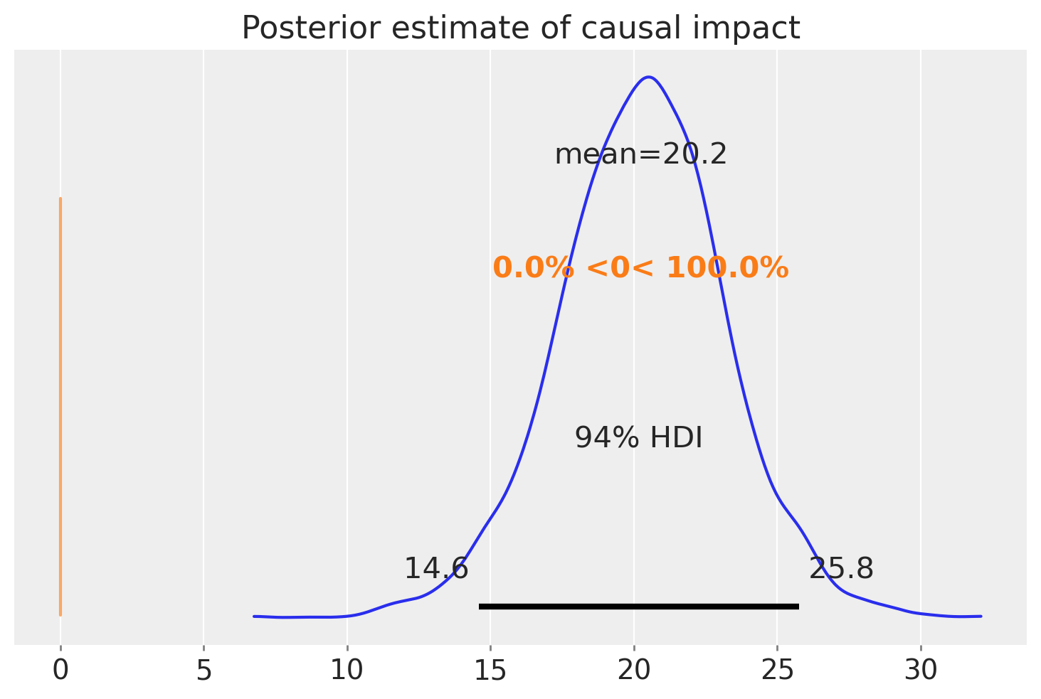 Causal impact = 20.24$CI_{94\%}$[15, 26]